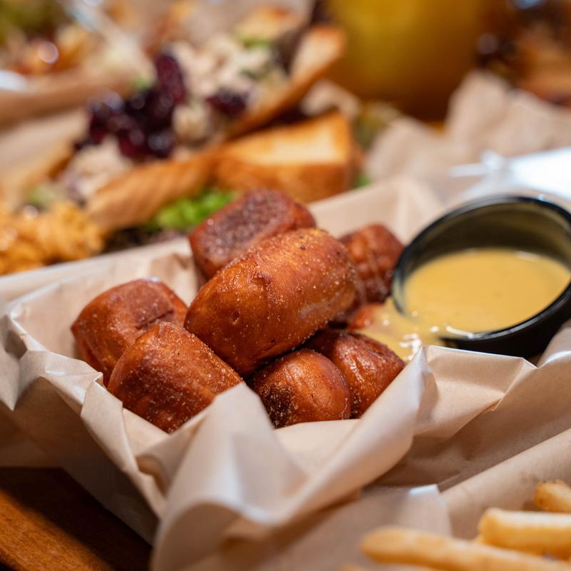 Pretzel bites fried for a crunchy outside & soft inside, then tossed in our house seasoning & served with choice of dipping sauces.